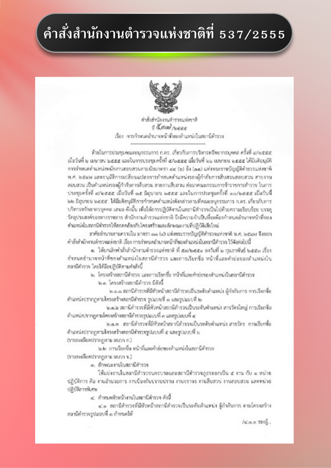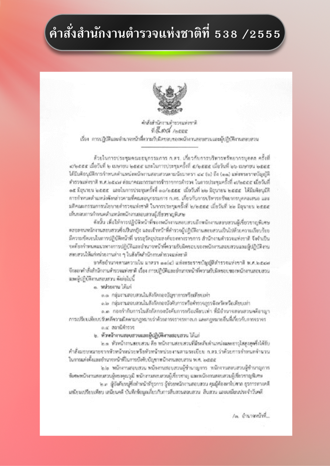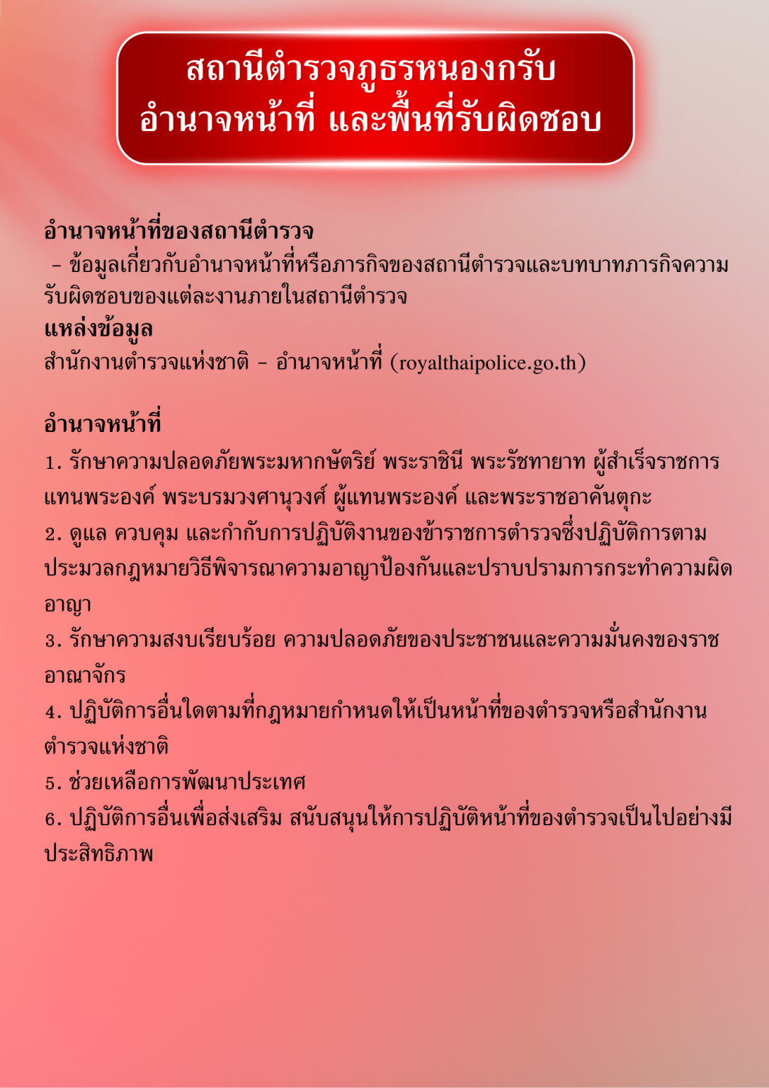 อำนาจหน้าที่ของตำแหน่งในสถานีตำรวจ